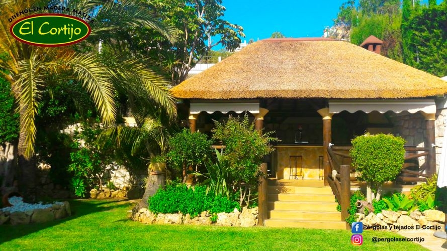 We are specialists in mounting African thatched roofs. We make new constructions, rehabilitations and our projects are implemented with natural materials, ideal for fabrics with rustic characteristics. For your projects, we have designers with more than 35 years of experience. This material is usually used in hotels, luxury houses, chalets, beach bars, event estates, water parks, gardens… Our main guarantee is the quality and professionalism of our work, within the agreed time.